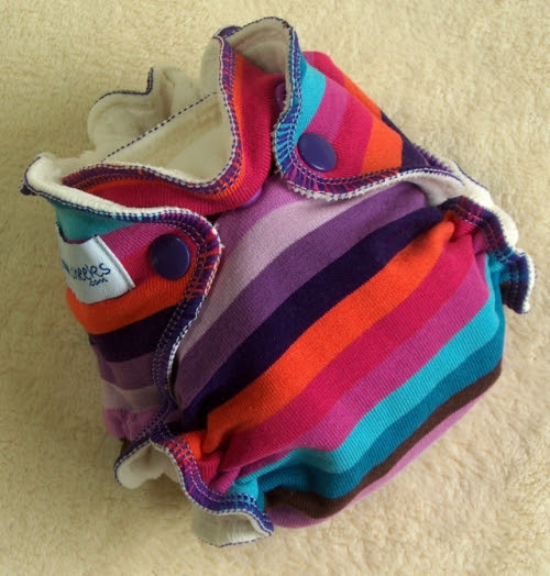 While I loved the one-size diapers for their versatility and long-life, I spent most of my time working on my patterns for sized diapers. I called these "Growing Cheekies" since they are made to fit your growing child. Apparently I have never made the "fitteds" version of this pattern available for download. That requires a bit of tweaking to the original pattern. For now I'll work on getting up the pocket and all-in-two version.